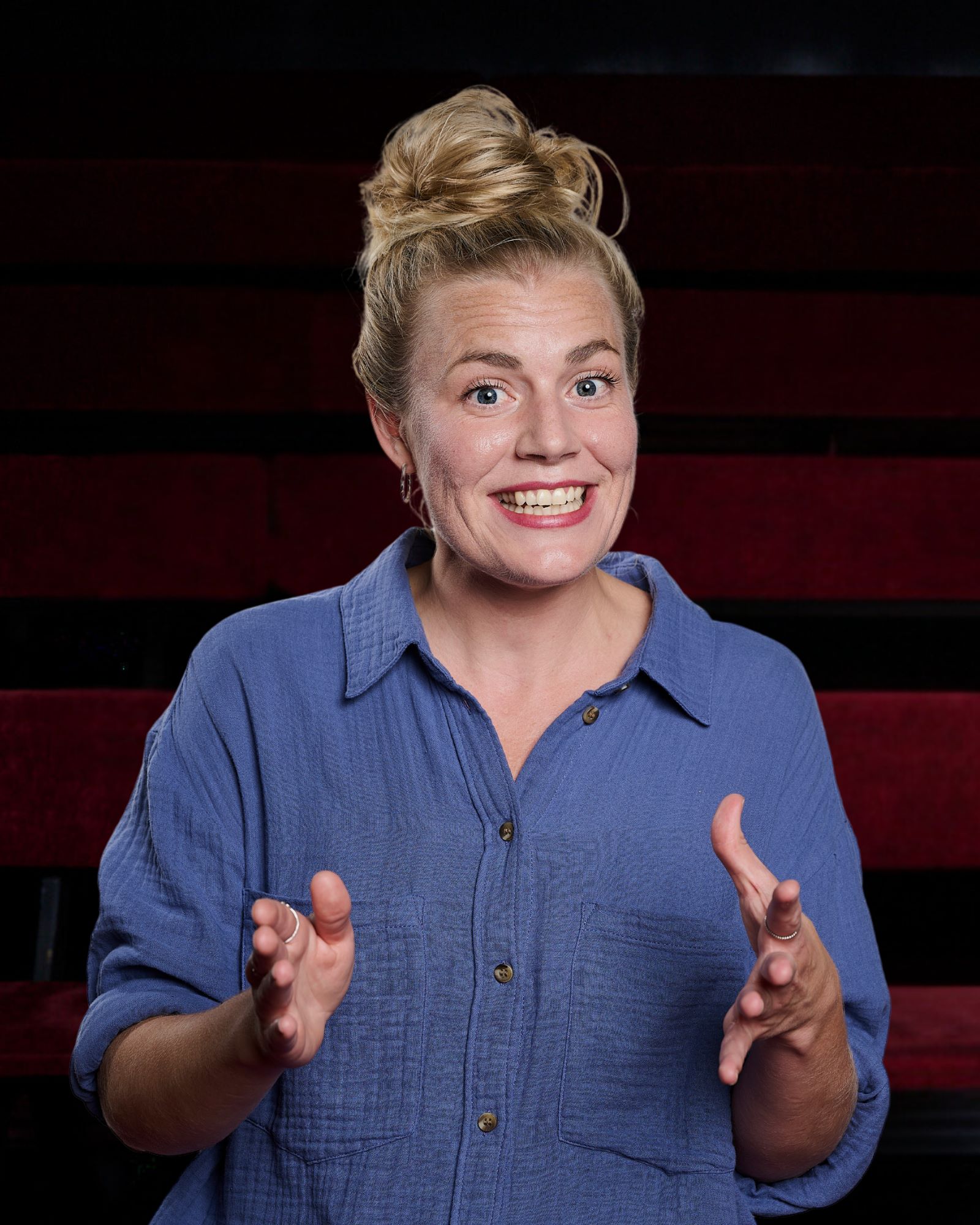 Ofta ber improvisatörerna om förslag från publiken men vi drar aldrig upp någon på scen.